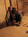 Jeff et Jim les artisans du dehors qui, de leurs 10 doigts délicats ciselèrent le ciment de la façade à coup de masse. Incroyables ces deux là !
